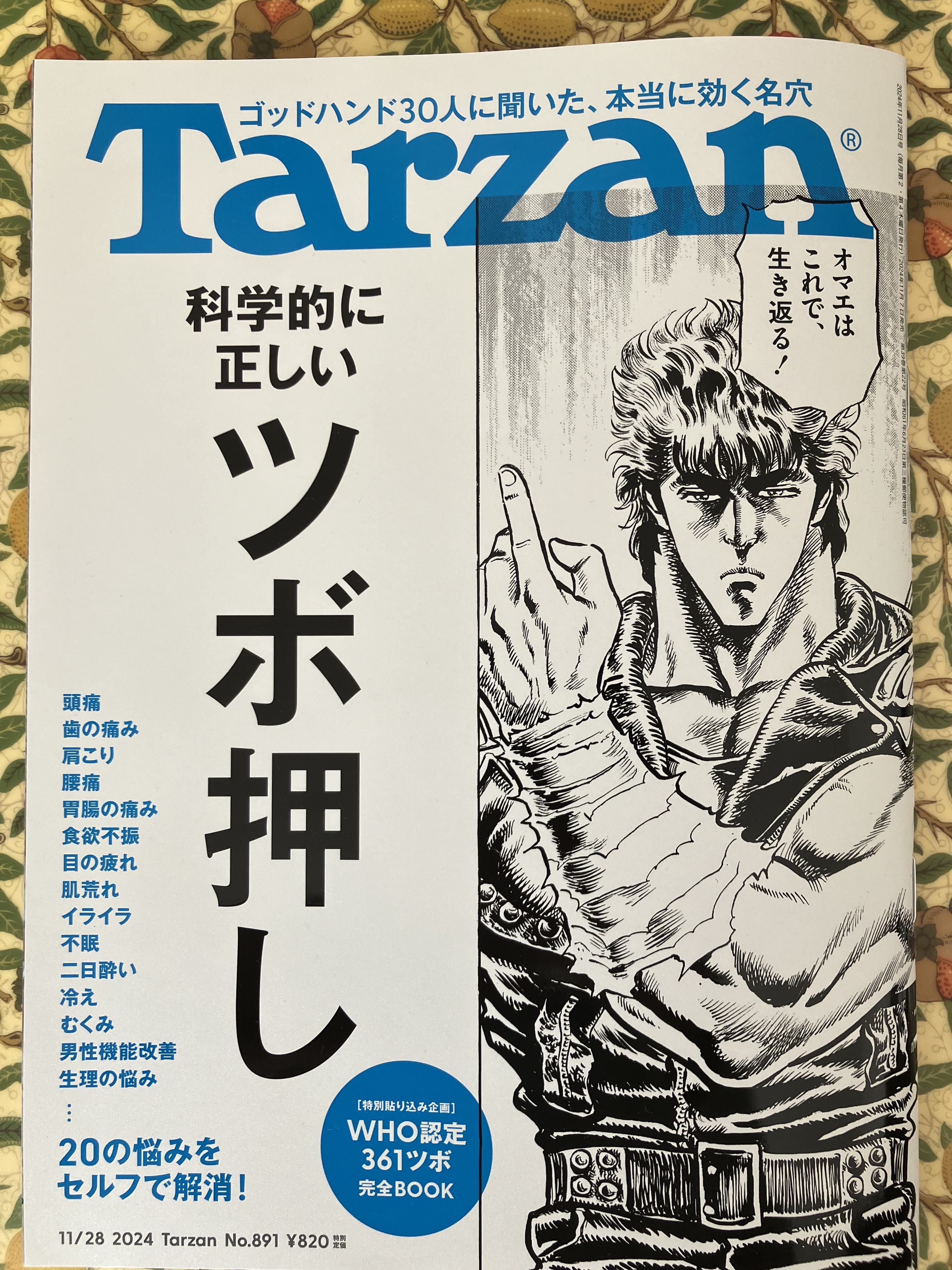 Tarzanの2024年11月号:科学的に正しいツボ押しに全国厳選施術院へ掲載されました。
